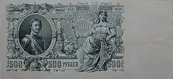 - На банкноте 1898 года портрет Петра Первого с той же скульптуры Антокольского, что и на современной банкноте. Остроумным способом Антокольский обратил внимание министра финансов С. Ю. Витте на вопрос неурегулированности их отношений в части авторских прав. В марте 1900 года Антокольский написал Витте из Парижа: «… Будучи недавно в Петербурге, мне случилось видеть новые пятисотрублевые кредитные билеты с изображением портрета императора Петра I со статуи моей работы. Я был очень польщён такой честью, которая редко выпадает художникам при их жизни. Но так как обыкновенно издатели имеют любезность посылать автору известное количество экземпляров, то не будет ли ваше высокопревосходительство столь милостивы сделать распоряжение об оказании и мне подобной же любезности, которою были бы очень довольны мои кредиторы, да и я не меньше…». Министр финансов отдал распоряжение директору Экспедиции заготовления государственных бумаг князю Б. Б. Голицыну о выделении Антокольскому четырёх кредитных билетов пятисотрублёвого достоинства[7].