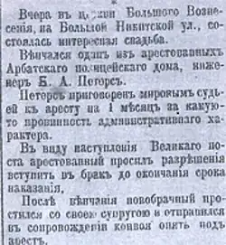 После смерти супруги Б. Петерс вступил в брак с В. В. Шумской. Газеты в 1904 году так описывали свадьбу