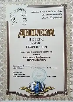 Б. Г. Петерс 10 января 1944 был награждён медалью «За отвагу».