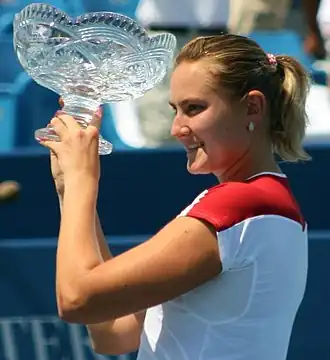 - ↑ В финале квалификации обыграла Жюстин Энен.