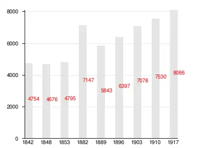 Изменение численности населения прихода Скворица с 1842 по 1917 год[18]: