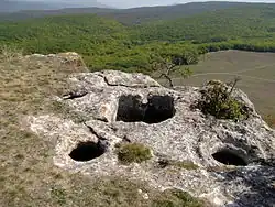 | Челтер-Коба (Оградительные Пещеры, из тюрк. «Чилтер» — деревянная решетка, перегородка, решетки и «Коба» — пещера) |