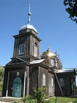 Церковь деревянная во имя Иоанна Золотоустого, построена около 1738 года, как видно из визиты, в 1746 году происходившей. По штатам состоит в 4 классе; земли имеет 56 десятин.