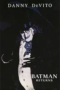 - В фильме «Бэтмен возвращается» роль Пингвина сыграл известный итало-американский актёр Дэнни Де Вито. Здесь Освальд Кобблпот представлен генетическим мутантом. Он родился в богатой семье, однако из-за его уродства и характера (убил залезшего в кроватку кота) родители избавились от него, сбросив коляску с Освальдом с моста в канализацию. Но он выжил (его вырастили и воспитали живые пингвины из заброшенного городского зоопарка) и спустя 33 года возвращается в Готэм-сити, чтобы захватить в нём власть. Объединившись с коррумпированным бизнесменом Максом Шреком, он быстро завоёвывает популярность в городе и готовится стать его мэром. Главной своей задачей он ставит убийство всех перворождённых сынов аристократии города, намереваясь подставить в этом Бэтмена. Однако супергерою удаётся его разоблачить, и Пингвин скрывается. Уйдя в канализацию, он планирует взорвать весь центр города при помощи радиоуправляемых пингвинов. Бэтмен снова мешает ему и приводит их прямо к логову злодея. Пингвин гибнет от полученных ран. После его смерти, группа пингвинов хоронят его тело в воде.