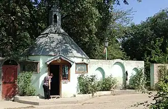 Комплекс состоит из небольшого конусообразного каменного храма с куполообразной крышей, покрытой жестяной цельной черепицей. Вершину купола подитоживает башня, которая также выполнена в форме жестяного конуса с маленьким куполом. С обеих сторон от входной двери в храм, расположены прямоугольные окна горизонтальной формы. Ещё одно прямоугольное окно, но уже вертикальной формы, находится с правой стороны от основной двери. Под ним установлен ящик для пожертвований.