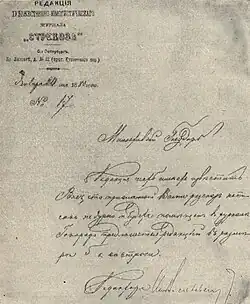 - ↑ Роскина Н. А. Письма к Чехову его отца П. Е. Чехова // Чехов, Антон Павлович (1860—1904). Сборник статей и материалов. — Ростов-на-Дону, 1967. — Вып. 4.