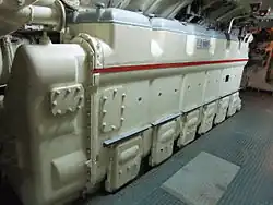 Два главных электродвигателя модели ПГ-101 имели мощность по 1350 л. с. обеспечивали скорость полного подводного хода в 13,1 узла, которая могла поддерживаться в течение часа. Два электродвигателя экономического хода модели ПГ-103 имели мощность по 50 л. с. и разгоняли лодку под водой до скорости 1,97 узла. На экономических электродвигателях заряда батарей хватало на 352 мили подводного хода.