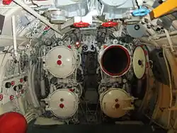 Торпедное вооружение лодки составляли 6 торпедных аппаратов калибра 533 мм: 4 носовых и 2 кормовых. Для носовых аппаратов в 1 отсеке на стеллажах хранились 6 запасных торпед. Вместо 10 носовых торпед лодка могла брать 20 мин типа АМД-1000: по две мины в каждый аппарат и 12 мин на стеллажах. Торпедная стрельба осуществлялась с глубин до 30 метров.