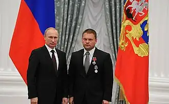 - 2013 — Медаль «За отвагу» (24 декабря 2013 года) — за отвагу и высокий профессионализм, проявленные в экстремальных ситуациях[64].