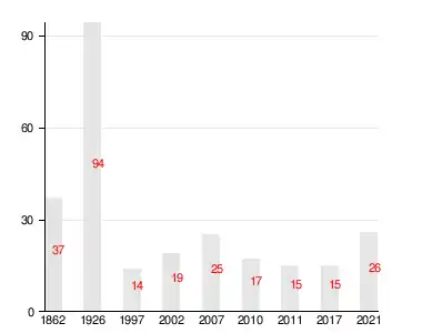| 1862[19] | 2007[20] | 2010[21] | 2011[22] | 2017[1] |