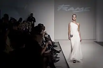По́диум — возвышение в виде длинной узкой платформы для показа моды (прохода моделей в одну и другую сторону под музыку).