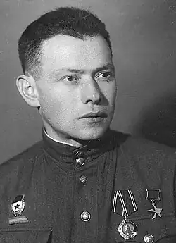 - ↑ Указ Президиума Верховного Совета СССР «О присвоении звания Героя Советского Союза генералам, офицерскому, сержантскому и рядовому составу Красной Армии» от 22 февраля 1944 года // Ведомости Верховного Совета Союза Советских Социалистических Республик : газета. — 1944. — 5 марта (№ 13 (273)). — С. 1. Архивировано 3 февраля 2022 года.