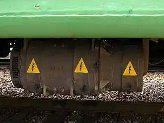 Первичный двигатель можно и вовсе убрать с локомотива, а энергию на локомотив передавать извне — по контактной сети. Именно на таком принципе работает электровоз — неавтономный локомотив, приводимый в движение электродвигателями. Электровоз через токоприёмник получает из контактной сети электроэнергию, которая затем передаётся на тяговые электродвигатели, а те уже через зубчатую передачу приводят во вращение движущие оси. Основным преимущество электровоза, перед автономными локомотивами, заключается в практическом отсутствии вредных выбросов в атмосферу (если, конечно, не считать выбросов от электростанций), что позволило перевести на электрическую тягу весь городской рельсовый транспорт — трамвай и метрополитен, а также монорельсовые поезда. Помимо перечисленных типов локомотивов, встречаются и их сочетания: электротепловоз, электропаровоз, теплопаровоз и так далее[33].