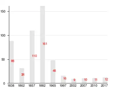 | 1838 | 1862[20] | 1965 | 1997 | 2007[21] | 2010[22] | 2017[1] |