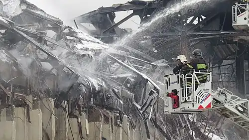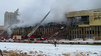 В здании произошло частичное обрушение кровли на площади в 1 тыс. квадратных метров[1]. Площадь пожара составила около 2 тысяч квадратных метров[4].