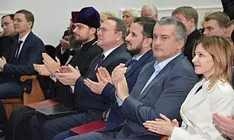 Глава Республики Крым Сергей Аксёнов и Наталья Поклонская в кителе с погонами государственного советника юстиции 3-го класса, 12 января 2016 года
