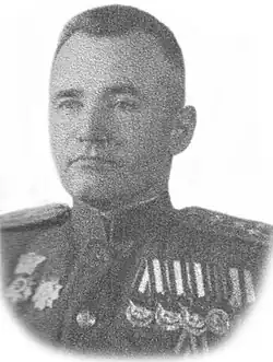 17 августа 1943 года он переведен командиром 325-й ночной бомбардировочной авиадивизии. 28 августа дивизия вошла в состав 1-й воздушной армии и участвовала в Смоленской наступательной операции, в освобождении Смоленской области. Зимой 1943/44 гг. ее части поддерживали войска фронта в операциях на витебском и оршанском направлениях. 25 мая 1944 года дивизия была перебазирована в район города Кричев, где вошла в 4-ю воздушную армию 2-го Белорусского фронта. Летом ее части участвовали в Белорусской, Минской и Осовецкой наступательных операциях, в разгроме окруженной группировки противника юго-восточнее Минска и освобождении восточных районов Польши. Дивизии за успешное выполнение боевых заданий командования в боях по овладению крепостью Осовец присвоено наименование «Осовецкая». На заключительном этапе войны в 1945 года дивизия успешно действовала в составе той же 4-й воздушной армии 2-го Белорусского фронта в Восточно-Прусской и Восточно-Померанской и Берлинской наступательных операциях[2].