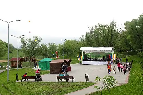 В центре парка располагаются 2 пруда площадью до 2-х гектар. На берегах прудов оборудованы волейбольная площадка и площадка для занятий воркаутом, установлены точки для проведения пикников и построена лодочная станция[2].