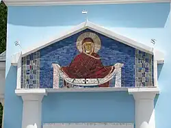 Мозаика Пресвятой Богородицы на фасаде колокольни Свято-Покровского храма в Судаке. Фото А. Трифонова, 2019