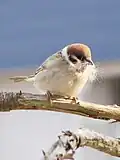 Полево́й воробе́й[1] (лат. Passer montanus) — широко распространённая птица семейства воробьиных, близкий родственник обитателя городов домового воробья. В отличие от последнего, в меньшей степени зависим от человека. Встречается на окраинах населённых пунктов, в заброшенных селениях и вблизи от посевов зерновых культур, садов и виноградников. В дикой природе распространён в светлых лесах, кустарниковых зарослях и степи. Несколько мельче домового воробья, отличается от него в первую очередь коричневой шапочкой на голове, отчётливыми чёрными пятнами на белых щеках, значительно меньшим по размеру чёрным «нагрудником» на горле и воротничком белых перьев по бокам шеи.