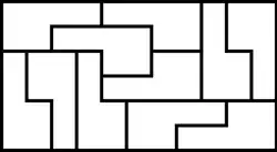 3. 1 2 Популярное определение полимино с помощью шахматной ладьи не является строгим: существуют несвязные подмножества квадратного паркетажа, которые может обойти ладья (например, группа из четырёх полей шахматной доски a1, a8, h1, h8 не является тетрамино, хотя ладья, стоящая на одном из этих полей, может за три хода обойти три других поля). Более строгим было бы определение полимино с помощью фигуры «визирь», используемой в шахматах Тамерлана: визирь ходит лишь на одну клетку по горизонтали или вертикали.
