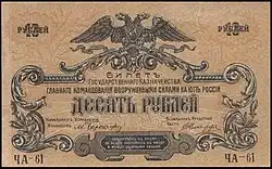 - ↑ Бойко Олена. денікінський режим на Українських землях: державний Устрій, соціально-економічна і національна політика // Проблеми вивчення історії Української революції 1917-1921 років. : збірник наукових праць. — Київ: Інститут історії України НАН України, 2010. — Вып. 5. — С. 115—144. — ISSN 966-02-2534-2.