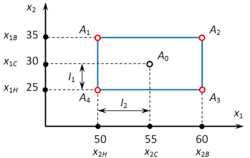 Возьмём верхние и нижние значения обоих факторов так, чтобы они располагались симметрично относительно текущего значения, например