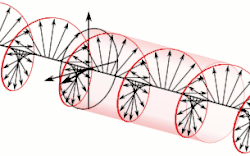 Поперечная волна характеризуется двумя направлениями: волновым вектором и вектором амплитуды, всегда перпендикулярным к волновому вектору с точностью до движения пространства. Волновой вектор показывает направление распространения волны, а вектор амплитуды показывает, в какую сторону происходят колебания. В трёхмерном пространстве имеется ещё одна степень свободы — возможность вращения вектора амплитуды вокруг волнового вектора. Тройка векторов, сопоставленная каждой точке бирегулярной кривой, образует репер Френе.