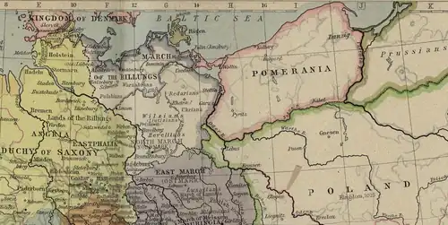 Померанию, в широком смысле, в древнейшие времена занимали германские племена ругиев и турпилингов, а с удалением их, к концу V века, заселили славянские племена лехитской группы, под именами хижан и лютичей, к западу от Одера, и собственно поморян — к востоку от неё, а позднее последние между реками Вислой и Слупьей получают название кашубов[6].