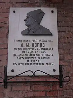 Дми́трий Миха́йлович Попо́в (13 [26] октября 1900, Беляево, Тамбовская губерния — 7 января 1952[1], Москва) — советский партийный деятель, первый секретарь Смоленского обкома и горкома ВКП(б) (1940—1948), один из руководителей партизанского движения в годы Великой Отечественной войны на Смоленщине.