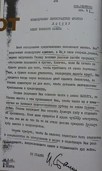 29 августа И. В. Сталин в телеграмме выехавшему в Ленинград Молотову: