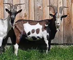 | Короткоухие козы с небольшими саблевидными рогами или безрогие | Альпийские молочные породы и их производные • Зааненская и производные породы • Тоггенбургская и производные породы • Альпийская серна и производные породы |