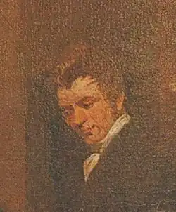 - Феофилус Лейн (англ. Theophilus Lane). Феофилус Лейн выступал в качестве друга жениха на бракосочетании художника 22 апреля 1817 года с Мэри Линк в приходской церкви Святого Петра в Херефорде[13]. Он принадлежал к семье выдающихся адвокатов и священнослужителей Херефорда. Некий Феофил Лейн женился на племяннице художника Томаса Гейнсборо, их дети получили известность как гравёры, литографы и как эксперты по арабскому миру. Однако, на картине изображён другой представитель этой семьи, Феофилус Лейн — сын Джеймса и Анны Лейн, крещённый в Росс-он-Уай в 1791 году, он был адвокатом, стал епархиальным регистратором в соборе Херефорда, в 1830 году в одном из документов он был указан в качестве нотариуса[9].