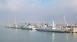 ![]() ВМБ Портсмут. На первом плане парадная стенка и HMS Illustrious | |||