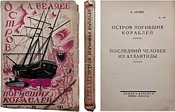 - Беляев А. Р. Остров погибших кораблей: Роман; Последний человек из Атлантиды: Роман / обл. Б. Шварца. — М.; Л. : Земля и фабрика, 1927. — 336 с. — 5000 экз. (2-е изд. 1929).