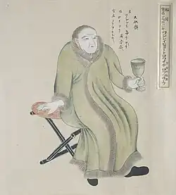 - ↑ Тем же указом японцы были награждены: «начальнику их Кооадаю 150 червонных и золотая медаль, и сверх того… золотые часы. …купцам, с ним возвращающимся, каждому по 50 червонных и по серебряной медали. Двум японцам, принявшим веру православного исповедания, …каждому по 200 рублей»[30].