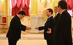 5. Церемония вручения верительных грамот послами иностранных государств. Дата обращения: 12 декабря 2013. Архивировано 5 июня 2010 года.