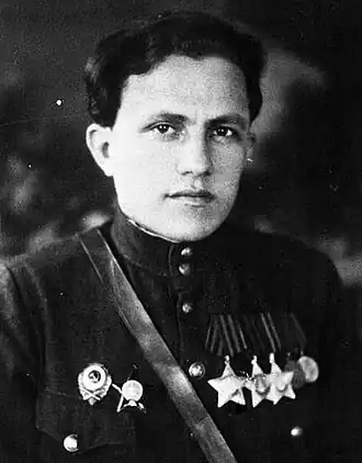 - ↑ На дату награждения орденом Славы 1-й степени.