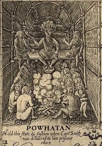 В 1607 году англичане основали в Северной Америке поселение Джеймстаун. Поухатан изначально пытался поддерживать хорошие отношения с европейцами, но постепенно стала нарастать напряженность и между индейцами и англичанами даже начались столкновения. В попытке улучшить ситуацию одна из дочерей Поухатана, Покахонтас, была выдана замуж за английского колониста Джона Рольфа. Это привело к временному установлению мира между индейцами и колонистами. Однако после смерти Поухатана его сводный брат Опечанканау вновь начал войну с англичанами.