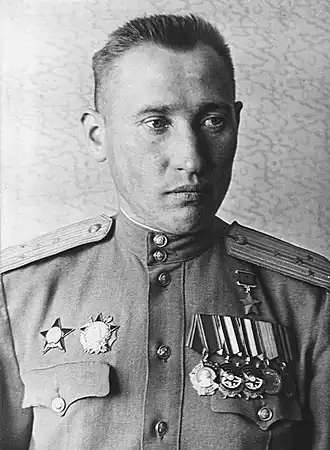 - ↑ С января 1943 года занимал должность командира авиационного звена.