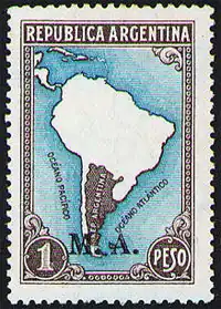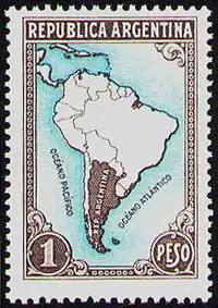 | 1936: Фолкленды (Мальвины) закрашены как часть территории Аргентины. Кроме того, искажены границы Чили и Перу (Sc #445) |