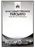 - ↑ Решение Думы Великого Новгорода от 23.12.2004 № 45 «О муниципальных наградах Великого Новгорода» (недоступная ссылка)