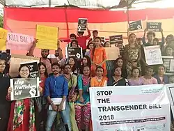 Законопроект о трансгендерных лицах (защита прав), 2016, который был первоначально внесен в парламент в августе 2016 года, был повторно внесен в парламент в конце 2017 года[2]. Некоторые трансгендерные активисты выступили против законопроекта, поскольку в нём не рассматриваются такие вопросы, как брак, усыновление и развод для трансгендерных лиц. Аккай Падмашали раскритиковал содержащееся в законопроекте определение трансгендерности, в котором говорится, что трансгендерность «основана на базовом предположении биологического детерминизма»[99]. Законопроект прошёл Лок Сабху 17 декабря 2018 года с 27 поправками, включая спорный пункт, запрещающий трансгендерам заниматься попрошайничеством[100]. Законопроект был направлен в парламентский комитет, но с роспуском Лок Сабхи 16-го созыва утратил силу[101].