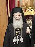 Его Божественное Блаженство Патриарх Святого Града Иерусалима и всей Палестины, Сирии, Аравии, всего Заиорданья, Каны Галилейской и святого Сиона (греч. Ή Αυτού Θειοτάτη Μακαριότης ὁ Πατριάρχης τῆς Ἁγίας Πόλεως Ἱερουσαλήμ καί πάσης Παλαιστίνης, Συρίας, Ἀραβίας, Πέραν τοῦ Ἰορδάνου, Κανᾶ τῆς Γαλιλαίας καί Ἁγίας Σιών) | 22 августа 2005 |