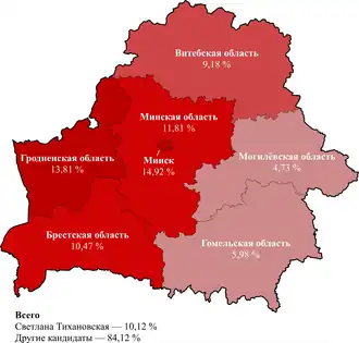![]() Официальные результаты Светланы Тихановской по регионам республики | |||