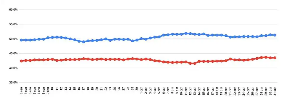 - ↑ Усредненные результаты опросов (Президентские выборы в США 2020). Дата обращения: 19 октября 2020. Архивировано 17 февраля 2021 года.