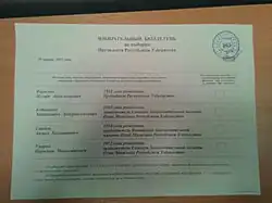 - ↑ Ислам Каримов переизбран Президентом Узбекистана. Дата обращения: 30 марта 2015. Архивировано 1 апреля 2015 года.