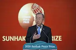- ↑ Co-chair Ban Ki-moon's acceptance speech for Sunhak Peace Prize (амер. англ.). Ban Ki-Moon Centre for Global Citizens (6 февраля 2020). Дата обращения: 17 июля 2022. Архивировано из оригинала 14 сентября 2021 года.