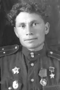 - ↑ Указ Президиума Верховного Совета СССР «О присвоении звания Героя Советского Союза генералам, офицерскому, сержантскому и рядовому составу Красной Армии» от 10 января 1944 года // Ведомости Верховного Совета Союза Советских Социалистических Республик : газета. — 1944. — 19 января (№ 3 (263)). — С. 1. Архивировано 7 декабря 2021 года.