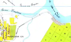 В 1898 году на волне железнодорожного бума в России была построена узкоколейная линия из Рязани во Владимир. В районе стрелки Оки и Трубежа разворачивается строительство транспортно-пересадочного узла. На правом берегу Оки (со стороны города) была устроена станция Ока-Левобережная, а на ответном левом берегу — Ока-Правобережная. Переброска грузов через реку осуществлялась грузовым паромом.